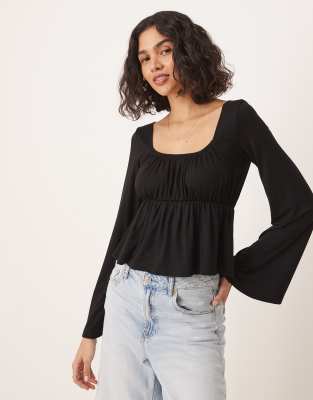 ASOS DESIGN - Top stile babydoll nero con maniche svasate