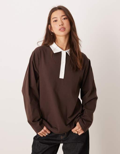 ASOS DESIGN - Top stile rugby oversize marrone