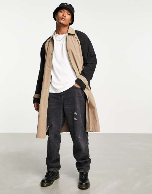 ASOS DESIGN - Trench comodo color pietra con maniche a contrasto