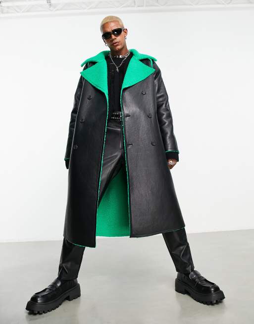 ASOS DESIGN - Trench in pelle sintetica nero con fodera a contrasto in pile borg