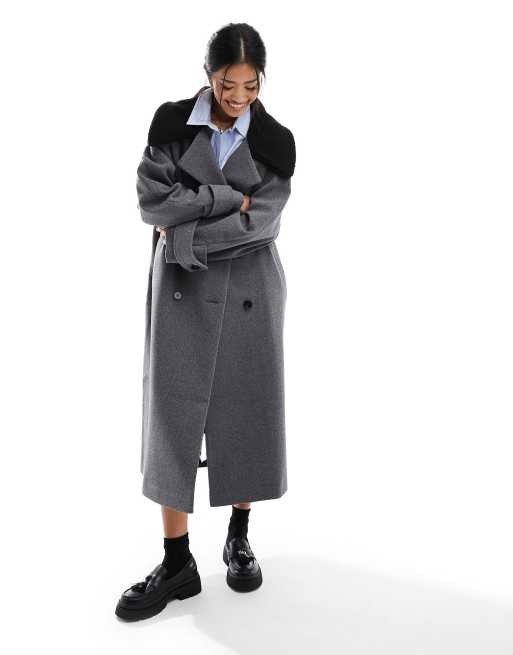 ASOS DESIGN - Trench oversize grigio con colletto il pile borg a contrasto