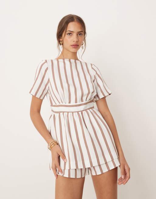 ASOS DESIGN - Tuta corta a doppio strato a righe neutre allacciato sul retro