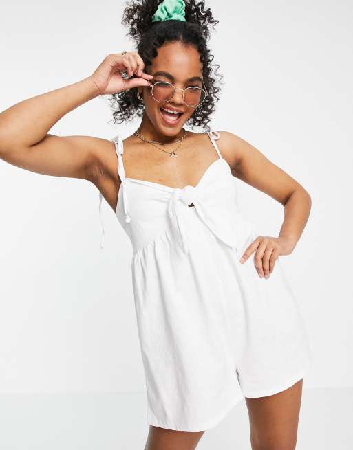 ASOS DESIGN - Tuta corta svasata senza maniche bianca allacciata sul davanti