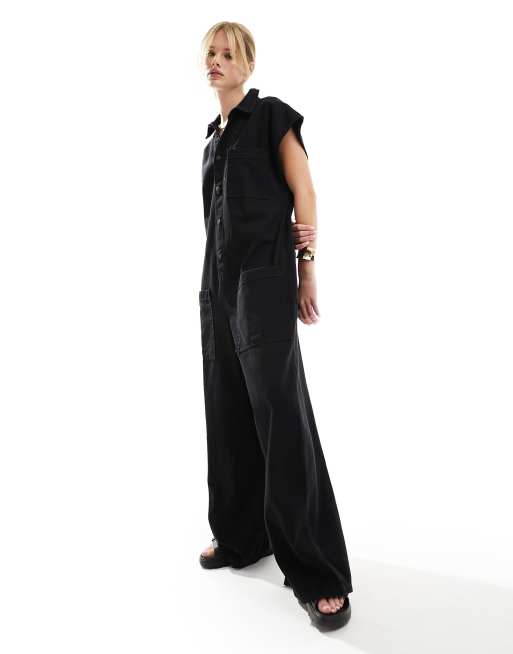 ASOS DESIGN - Tuta intera nera con maniche a kimono e tasche scese