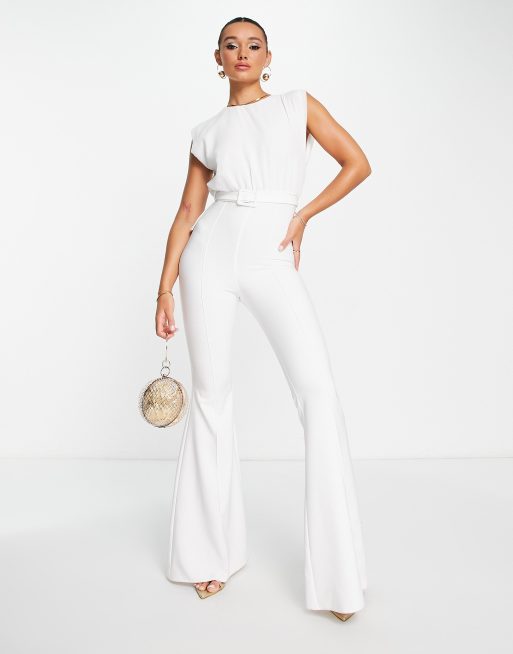 ASOS DESIGN - Tuta jumpsuit a zampa con top in chiffon e cintura bianca