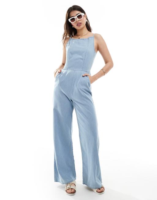 ASOS DESIGN - Tuta jumpsuit in denim morbido blu medio allacciata sul retro