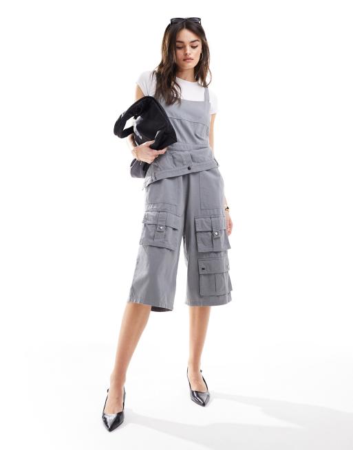 ASOS DESIGN - Tuta jumpsuit modello jorts grigia multitasche