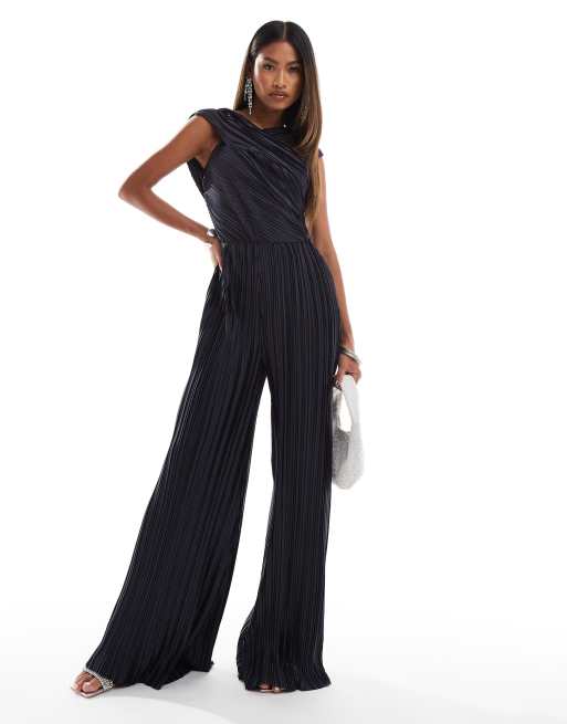 ASOS DESIGN - Tuta jumpsuit plissé grigio antracite con incrocio e spallina scivolata