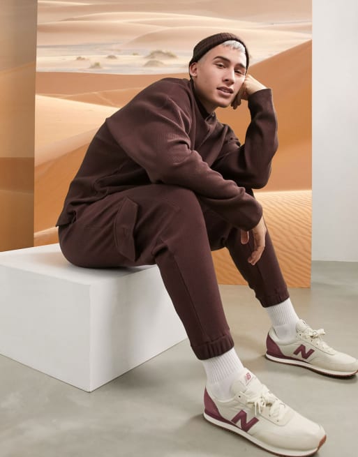 ASOS DESIGN - Tuta sportiva oversize in piqué marrone in coordinato