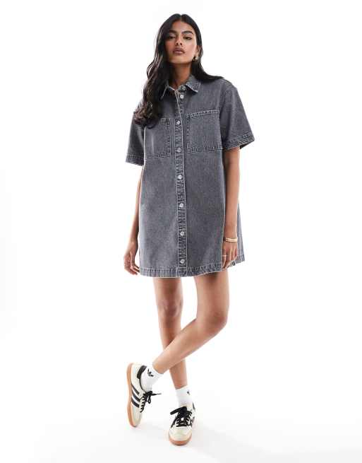 ASOS DESIGN - Vestito camicia a maniche corte in denim grigio