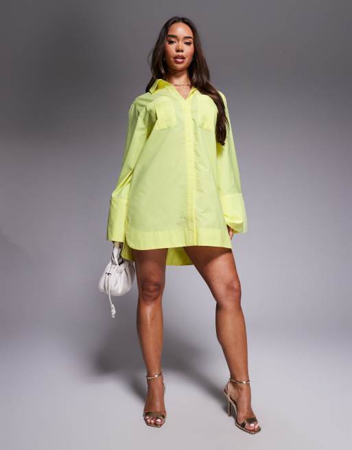 ASOS DESIGN - Vestito camicia corto con polsini ampi e tasche oversize giallo acceso
