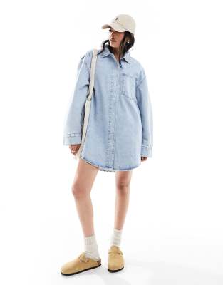 ASOS DESIGN - Vestito camicia corto di jeans lavaggio candeggiato con tasche sul davanti
