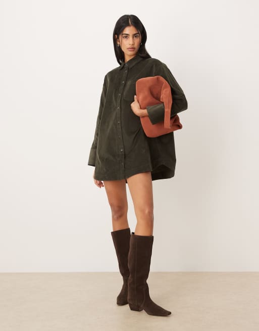 ASOS DESIGN - Vestito camicia corto oversize squadrato verde scuro