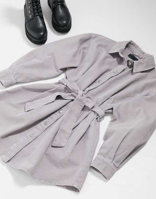 ASOS DESIGN - Vestito camicia di jeans oversize lavaggio lavanda con cintura
