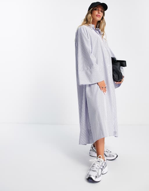 ASOS DESIGN - Vestito camicia lungo a trapezio blu a righe