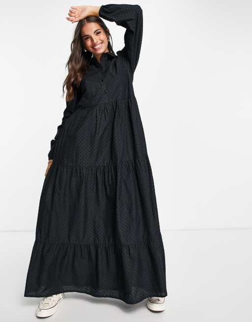 ASOS DESIGN - Vestito camicia lungo in plumetis nero