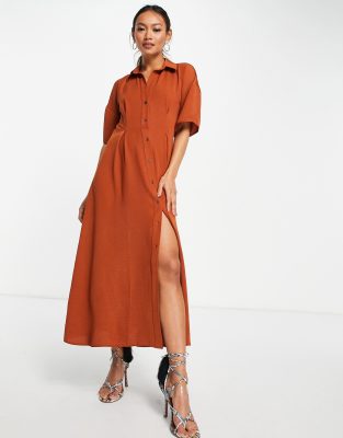 ASOS DESIGN - Vestito camicia midi color ruggine con bottoni