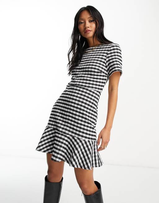 ASOS DESIGN - Vestito corto a maniche corte con fondo peplo in jacquard a quadretti