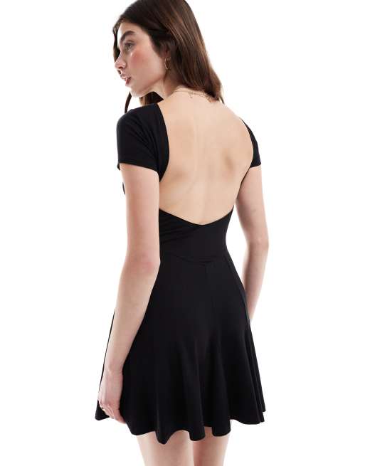 ASOS DESIGN - Vestito corto a maniche corte nero con gonna godet e scollo sul retro