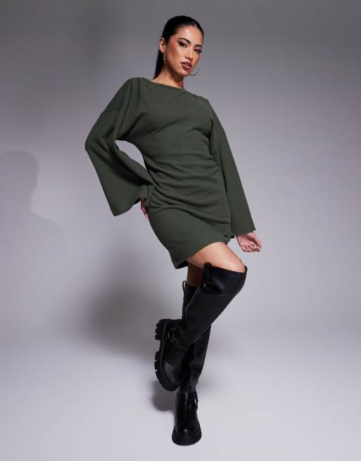 ASOS DESIGN - Vestito corto con maniche a kimono morbidissimo kaki