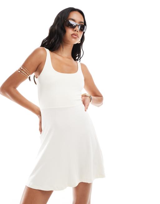 ASOS DESIGN - Vestito corto con scollo rotondo crema con gonna skater