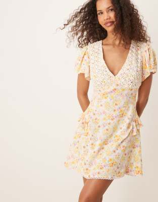 ASOS DESIGN - Vestito corto con stampa mista e busto in pizzo