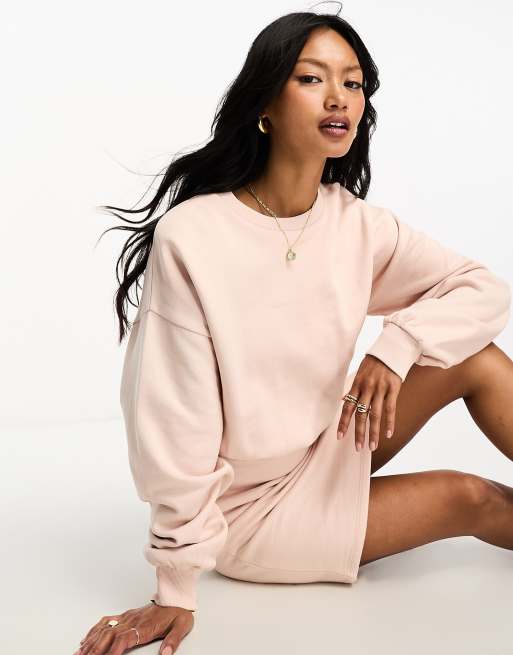 ASOS DESIGN - Vestito corto girocollo rosa pallido con maniche a campana