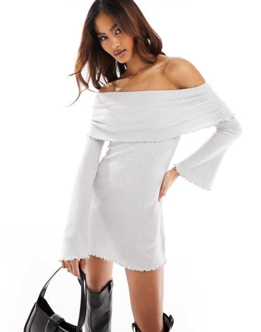 ASOS DESIGN - Vestito corto monospalla grigio a coste spazzolato