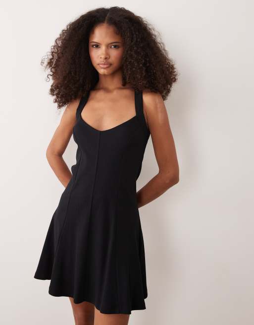 ASOS DESIGN - Vestito corto nero allacciato al collo con cuciture a coste