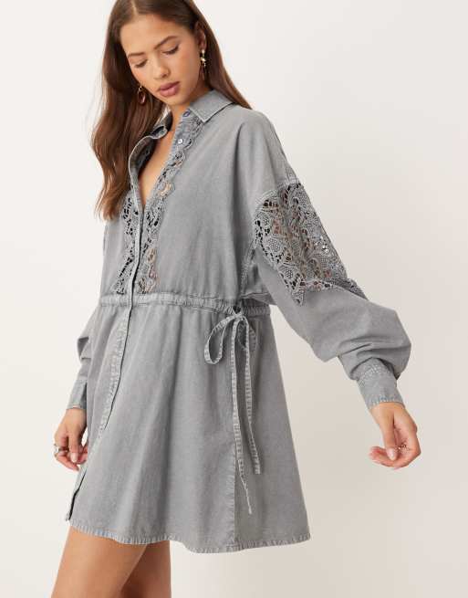 ASOS DESIGN - Vestito corto stile camicia blu ricamato