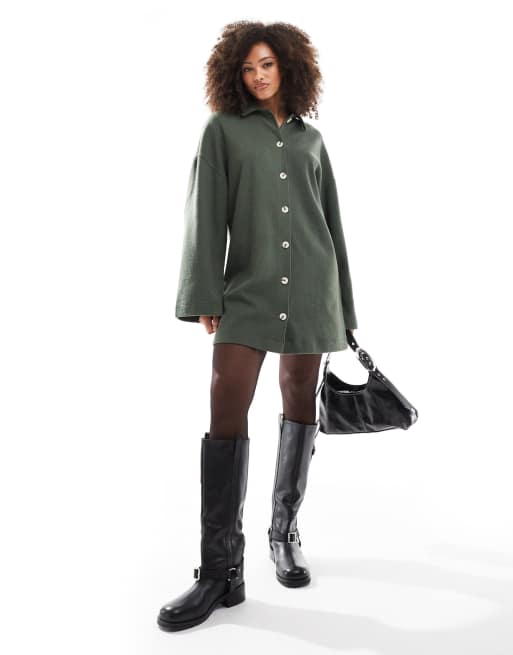 ASOS DESIGN - Vestito corto stile cardigan kaki ultra morbido con bottoni