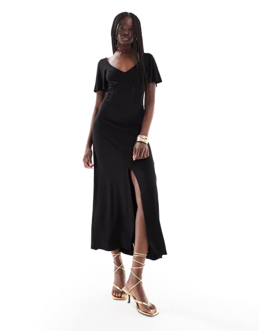 ASOS DESIGN - Vestito da giorno midi a corsetto nero