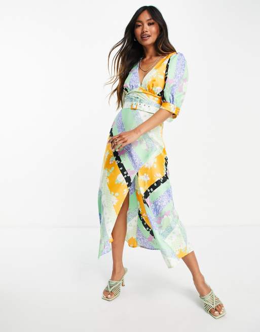 ASOS DESIGN - Vestito da giorno midi con stampa a fiori misti e cintura