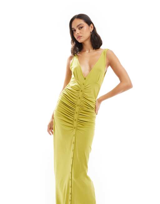 ASOS DESIGN - Vestito da giorno senza maniche verde arricciato con bottoni sul davanti