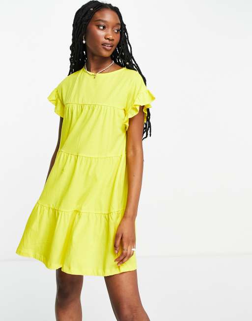ASOS DESIGN - Vestito grembiule a balze con maniche con volant, giallo acceso