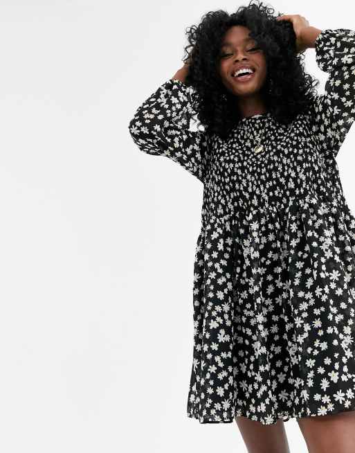 ASOS DESIGN - Vestito grembiule corto arricciato con stampa a fiori