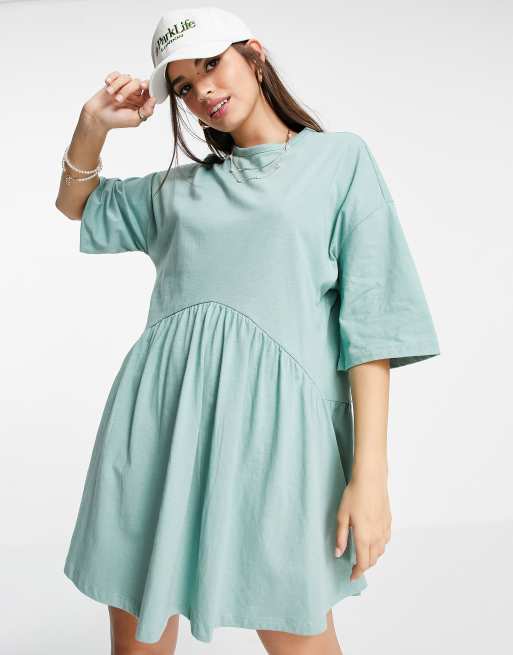 ASOS DESIGN - Vestito grembiule corto oversize con vita scesa verde salvia