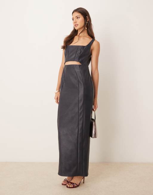 ASOS DESIGN - Vestito longuette in pelle sintetica blu notte con scollo squadrato e cut-out