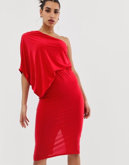 ASOS DESIGN - Vestito longuette monospalla con drappeggio