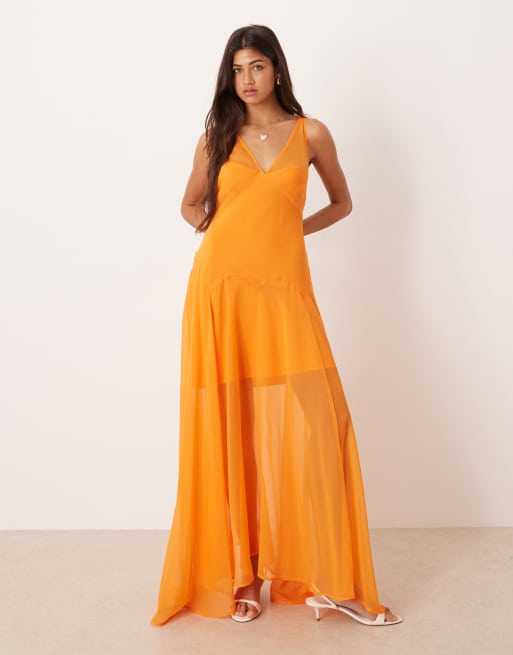 ASOS DESIGN - Vestito lungo a canottiera in chiffon arancione acceso