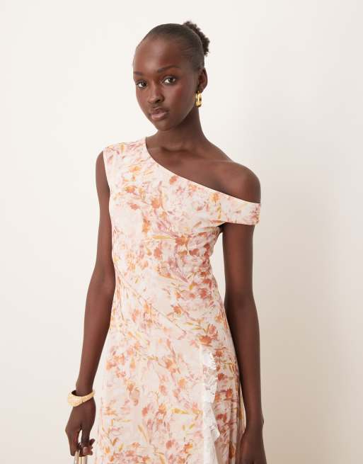 ASOS DESIGN - Vestito lungo a fiori con orlo asimmetrico a fazzoletto