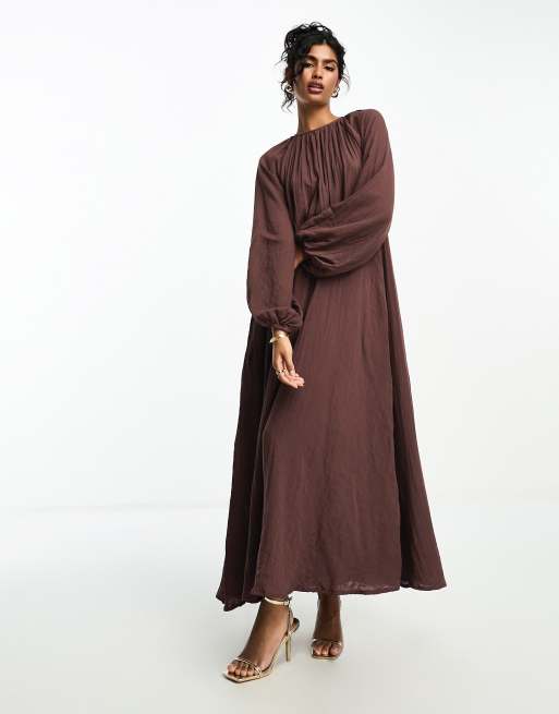 ASOS DESIGN - Vestito lungo a trapezio color cioccolato in tessuto doppio