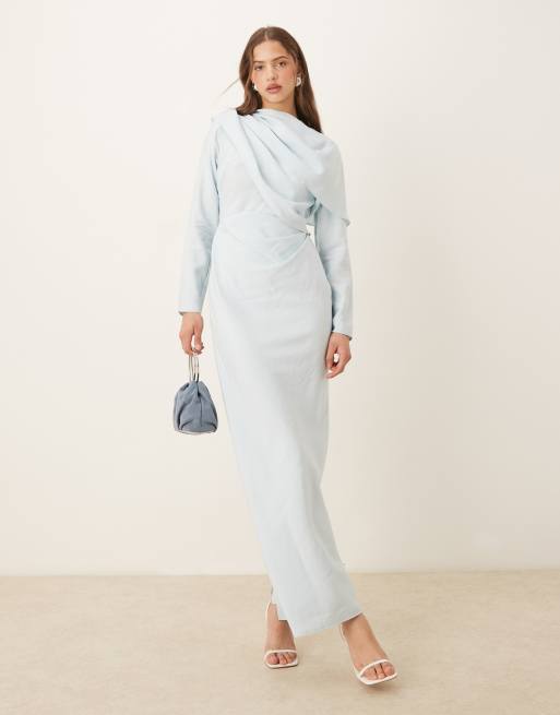 ASOS DESIGN - Vestito lungo accollato blu chiaro con corpino drappeggiato