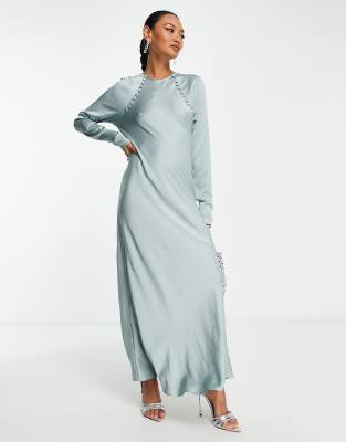 ASOS DESIGN - Vestito lungo asimmetrico in raso con bottoni azzurro