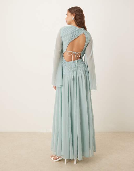 ASOS DESIGN - Vestito lungo blu chiaro con vita scesa asimmetrica e schiena scoperta