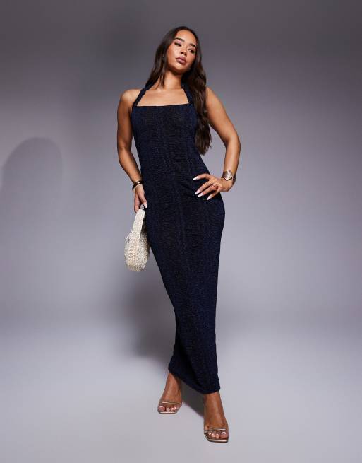 ASOS DESIGN - Vestito lungo blu navy metallizzato con scollo squadrato