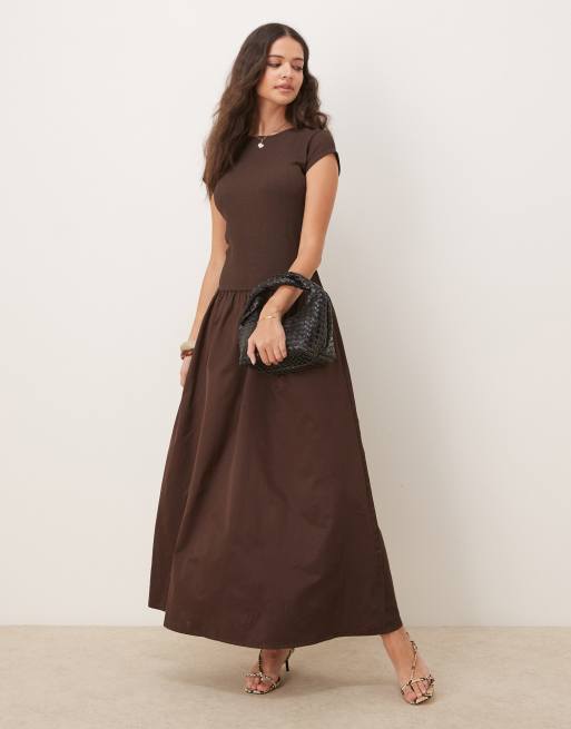 ASOS DESIGN - Vestito lungo con gonna intrecciata marrone testurizzato