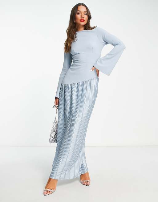 ASOS DESIGN - Vestito lungo con pieghe e maniche svasate blu polvere