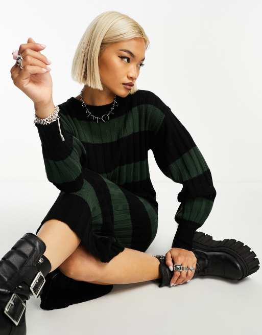 ASOS DESIGN - Vestito lungo in maglia a righe nere e verdi