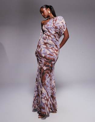 ASOS DESIGN - Vestito lungo monospalla con spallina imbottita e scollo a barchetta